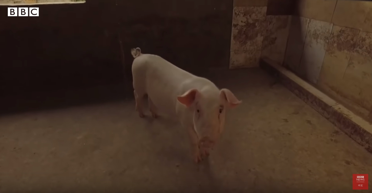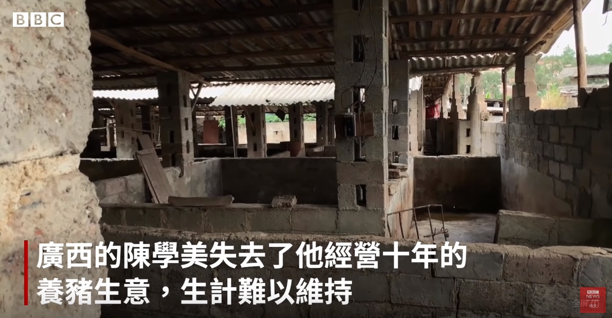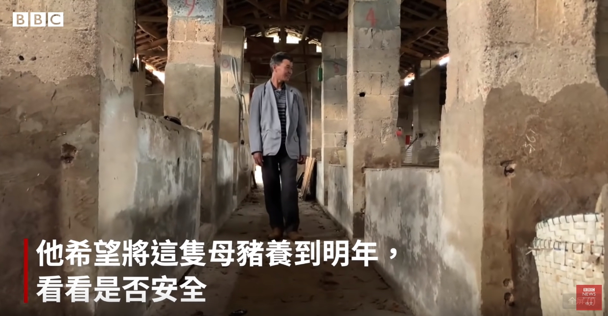 ▼陳學美只剩一頭母豬存活。(圖/翻攝自BBC中文 youtube)