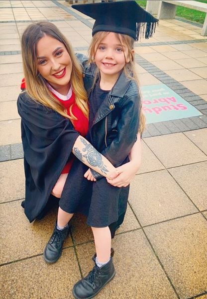 英國一名女子瑞秋(Rachael Campey)在14歲時懷孕,之後被迫離開學校,15歲時產下女兒後,她從事無數份兼職工作,並透過7個不同教育機構持續學習。皇天不負苦心人,今年21歲的她在近日完成大學學業,6歲女兒也出席了她的畢業典禮,讓瑞秋相當感動。