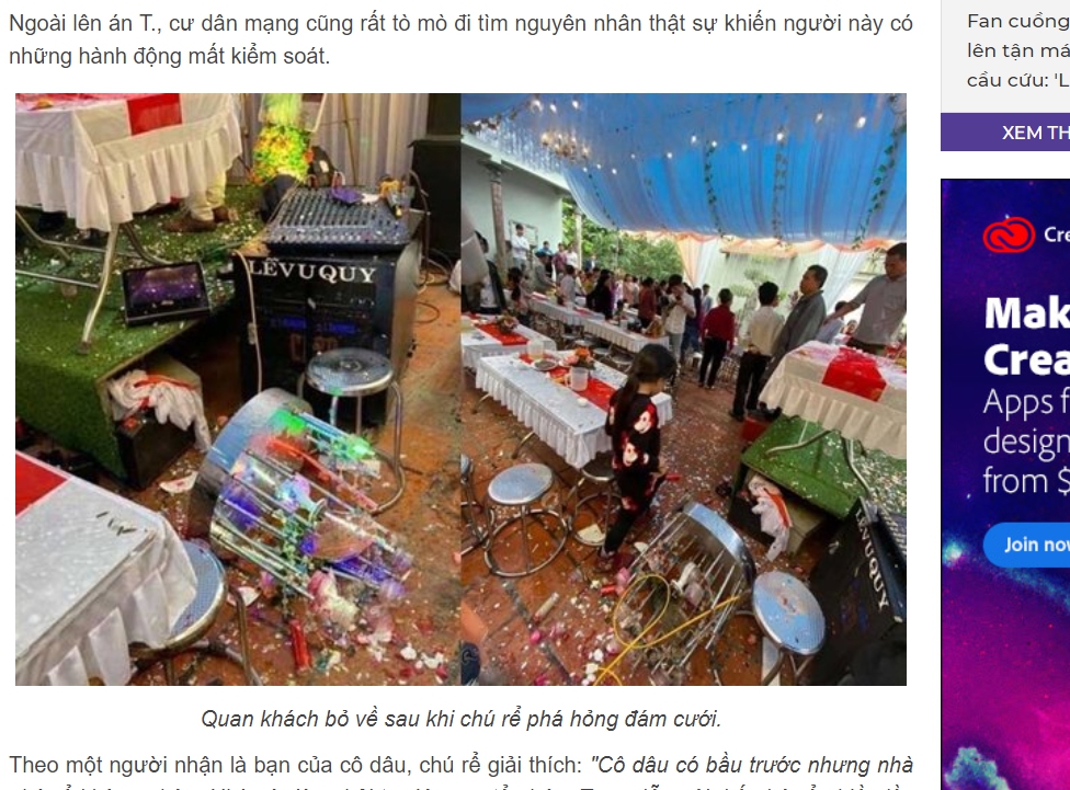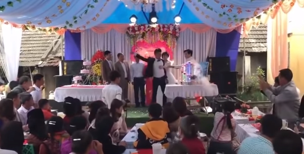 綜合越媒報導,這段暴走影片在網路上瘋傳,據了解,事發於越南永福省三島縣,當時這對新人的父母也在台上,雙方正在敬酒,台下也有大批賓客,然而沒想到敬酒到一半,新郎和爸爸似乎開始爭論起來,過沒多久,新郎突然暴走,轉過身怒丟酒杯,接著一腳踹飛香檳塔,現場一片狼藉,賓客也嚇得尖叫,最後由於場面過度失控,婚禮被迫結束。