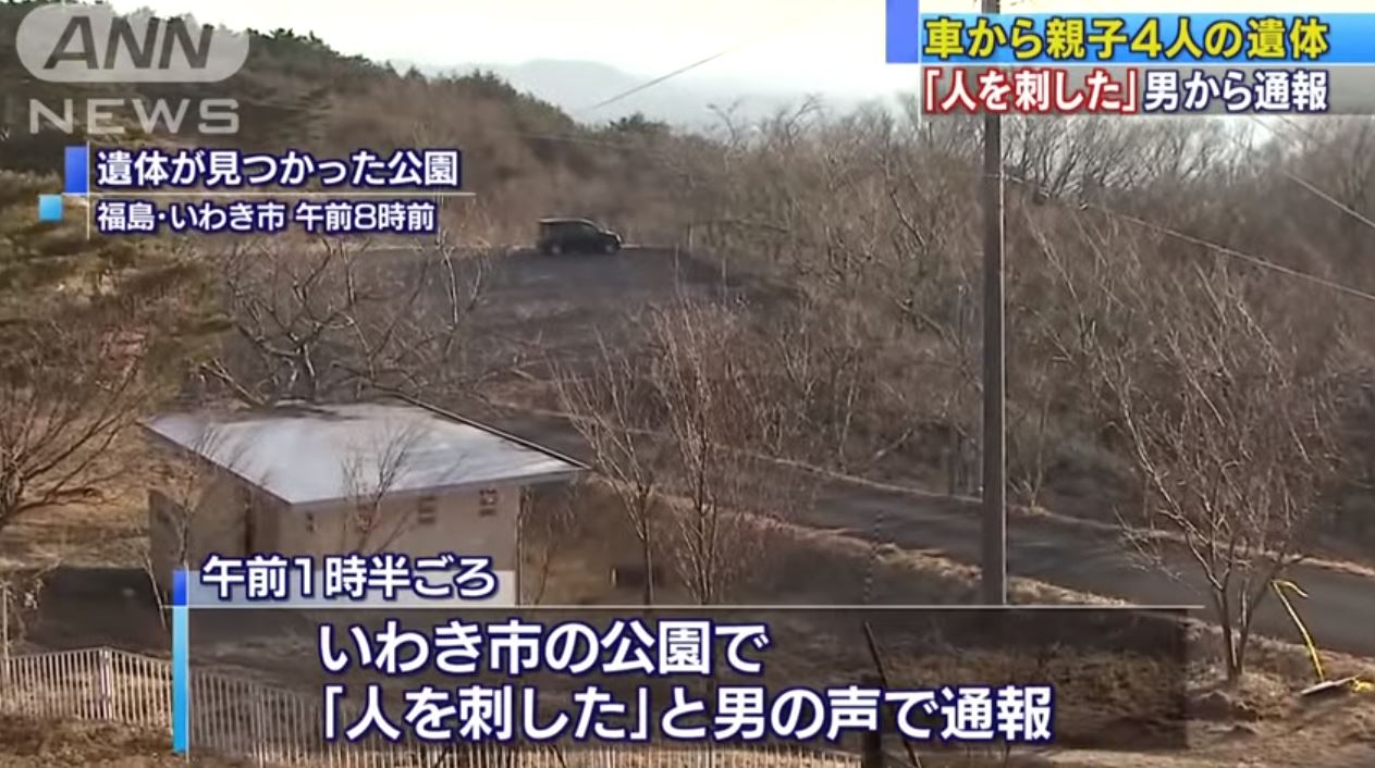 綜合日媒報導,22日凌晨1時30分,在磐城市三和町水石山公園的停車場中,民眾發現一輛汽車內有4人遭刺殺,警方獲報後立刻到場確認,4名死者身分分別為43歲的吉川美奈子、15歲的兒子步夢以及13歲的雙胞胎女兒茅乃、海音。