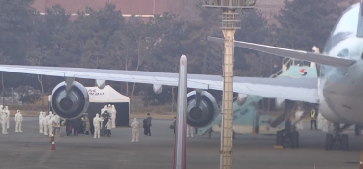 南韓記者:「南韓駐武漢總領事館向僑胞們發出了緊急通知,表示取消了早上在武漢機場集合的計劃,目前先待命。」