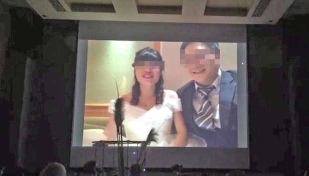 ▼尤姓夫妻因自主隔離,以直播方式舉辦婚禮。(圖/翻攝自中國報)