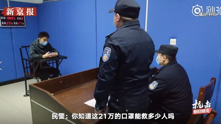 大陸警方:「你知道21萬能買多少口罩嗎,你知道21萬的口罩能救多少人嗎?」