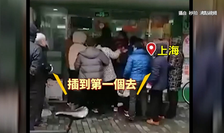 搶防疫物質,大陸民眾火氣不小,有女孩拿刀砍人,上海這間藥店也一樣,兩名男子為了買口罩又打起來。