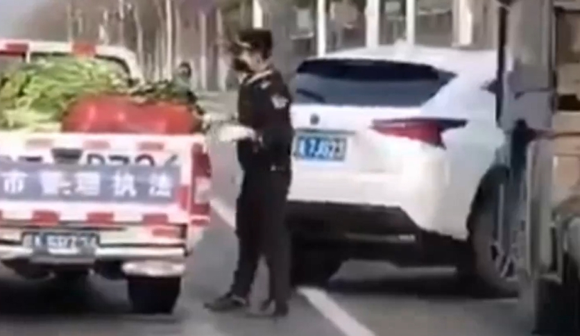 網友邊拍影片,邊配音,說城管是要私自把蔬菜搬走,不過大陸官媒追蹤,找到拍影片的男子,並對鏡頭致歉。