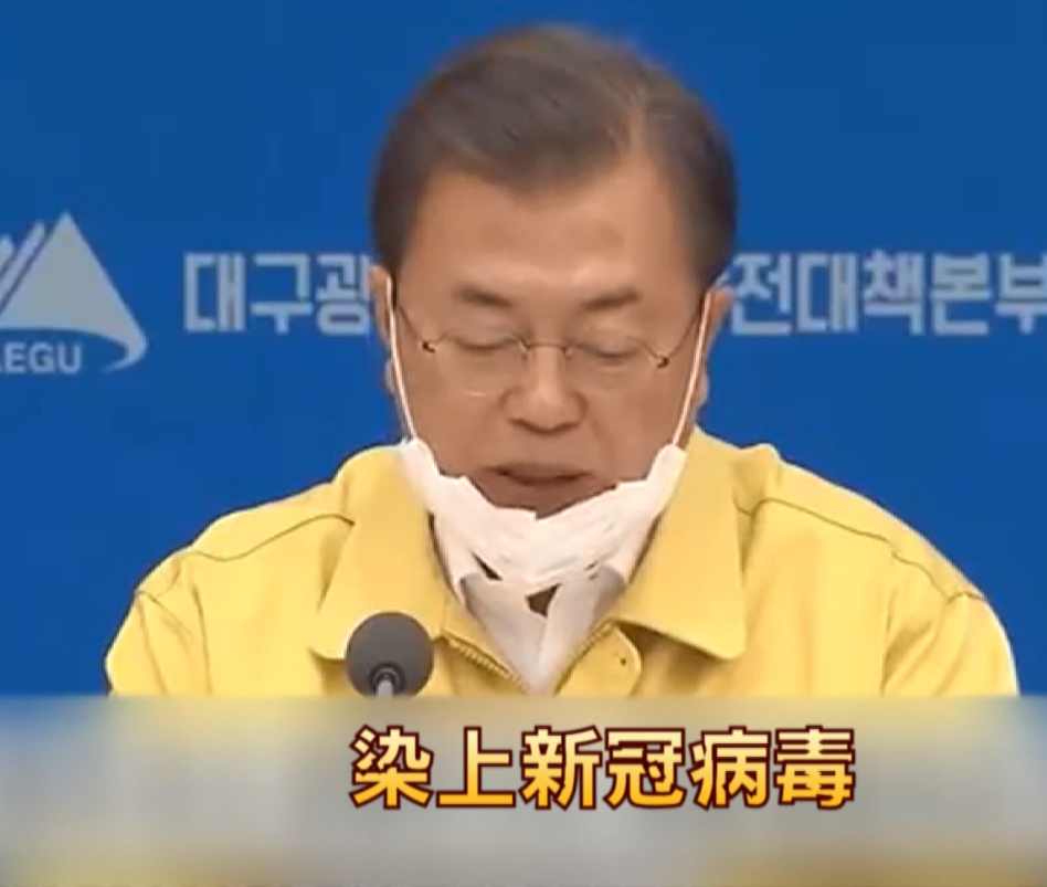 MBC記者:「文在寅總統在昨天下午,在大邱市參加疫情對策會議,而在文在寅左方的,大邱市副市長戴著口罩,坐在座位上,大邱市副市長秘書,在當天晚一點才得知,染上新冠病毒。」