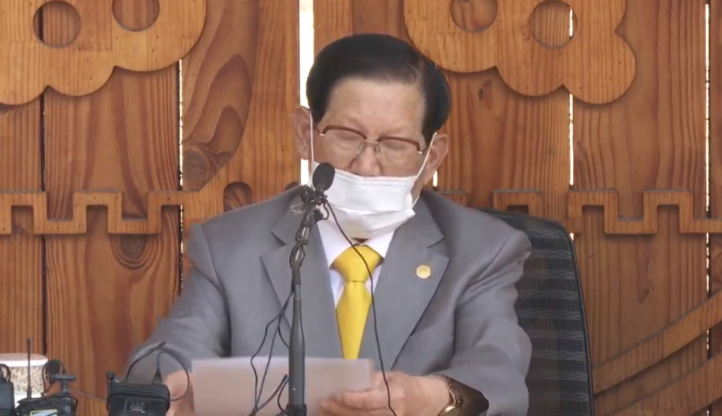 新天地教主李萬熙:「新天地的活動全面暫停,我們從現在起,所有教會任何聚會,任何場所,今天也是一樣,全都終止。」