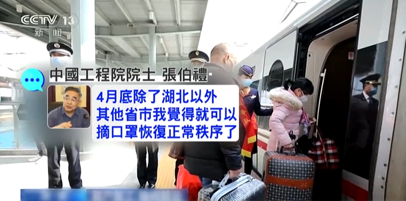 ▼張伯禮認為,四月底除了湖北以外,各省都能摘下口罩,恢復正常生活。(圖/翻攝自CCTV/東森新聞)