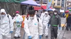 ▼安山市政府針對市場、車站、公車站等場所進行全面消毒。(圖/翻攝自騰訊新聞微博)