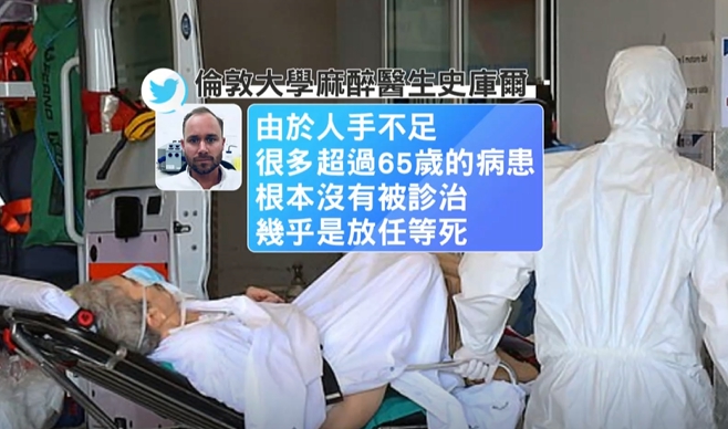 ▼英國麻醉科醫生在推特上表示,由於人手不足,義大利超過65歲的武肺病患根本沒有被診治。(圖/東森新聞)