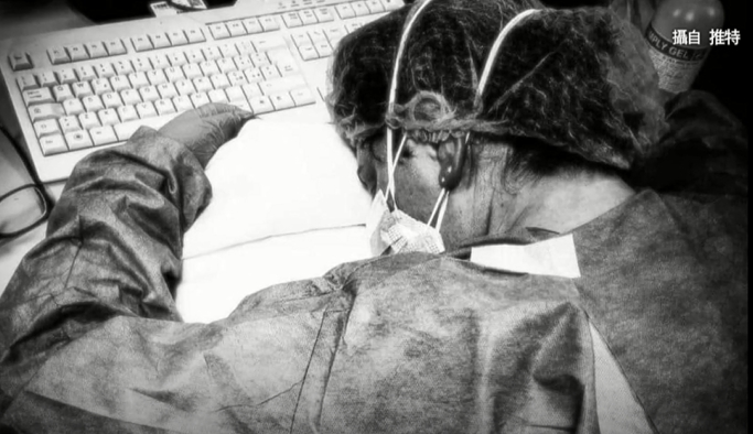 推特上還流傳一張照片,義大利醫生穿著防護衣,在電腦前累到睡著了。