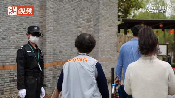 ▼杭州出現了戴著特殊眼鏡的保安,這是智能測溫AR眼鏡 ,能隨即將體溫過高的遊客揪出來。(圖/翻攝自秒拍)