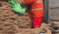 大陸海關把貨櫃全打開,一個個綠色包裝全都無法出口,就是因為,檢查一發現,本來申報單上寫得是黑鐵絲要出口到非洲國家,結果打開一看,全是由黑鐵絲覆蓋的口罩,申報不實,當然全遭扣走。