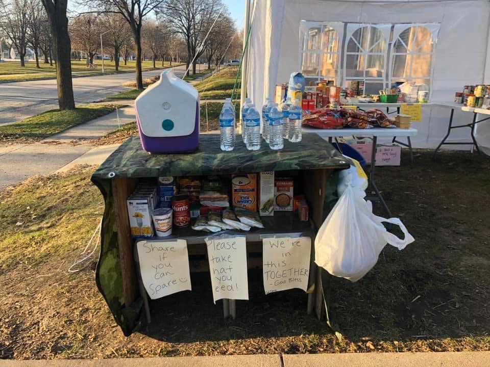 而就在美國,也出現了一件令人暖心的事情, 因為疫情影響,全國物資出現短缺,居住在美國東部威斯康辛州密爾沃基市(Milwaukee, Wisconsin)的高爾(Gall)一家人,就在家中庭院開設免費食物補給站,提供給需要幫助的人使用。