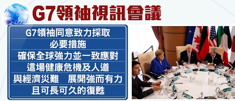 ▼G7領袖舉行視訊會議中各國同意應改革WHO。(圖/東森新聞)