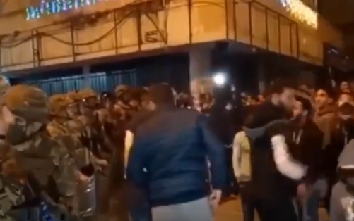 ▼軍隊出現在暴動民眾四周並以警盾包圍。(圖/翻攝自推特)