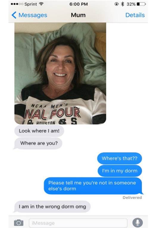 18歲的麥克納和媽媽上周約好要一起搬宿舍,媽媽比約定好的時間提早到宿舍,想要給女兒一個驚喜。媽媽潛入宿舍後,躺在床上自拍,並且傳給女兒,告訴女兒「看看我在哪!你在哪啊?」結果女兒回:「我在宿舍啊!」女兒意識到情況不對,反問媽媽「拜託你別告訴我你在別人宿舍…」媽媽躺在房間5分鐘後,發現自己闖了個大烏龍,立刻逃離他人房間。網友看了之後也紛紛表示,「哈哈哈,天才媽媽」、「太可愛了!」、「我快笑暈」。