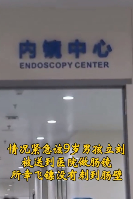 不過男童做完腸鏡檢查後,醫師發現腸道相當乾淨,完全沒有被刺傷的情況,推測飛鏢可能剛好卡在直腸的糞便裡,才沒有傷害到男童的腸壁,最後醫師也在取出糞塊時發現了飛鏢,一場驚魂就此落幕。