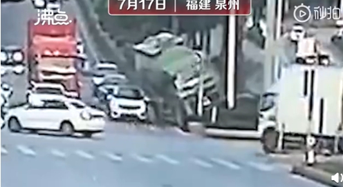 大陸福建晉江17日一輛重型水泥車疑似剎車不及,翻覆後壓扁一輛小型轎車,導致車上女駕駛不幸身亡,現場畫面讓人怵目驚心。