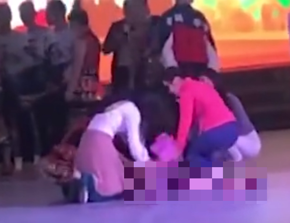 ▼過段時間後才有醫護人員對女舞者進行救治。(圖/翻攝自《封面新聞》微博)