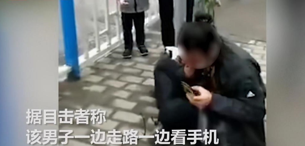 ▼一名男子邊滑手機邊走路。(圖/翻攝自騰訊網)