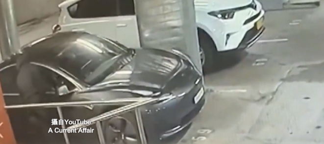 ▼兩名小偷鬼鬼祟祟潛入地下室,在這台電動車旁邊又敲窗又拉車門。(圖/翻攝自A Current Affair/youtube)
