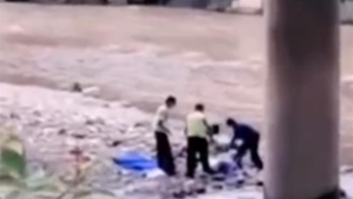 ▼丈夫將女子一把抱起,從12公尺高的橋丟下去。(圖/翻攝自澎湃視頻)