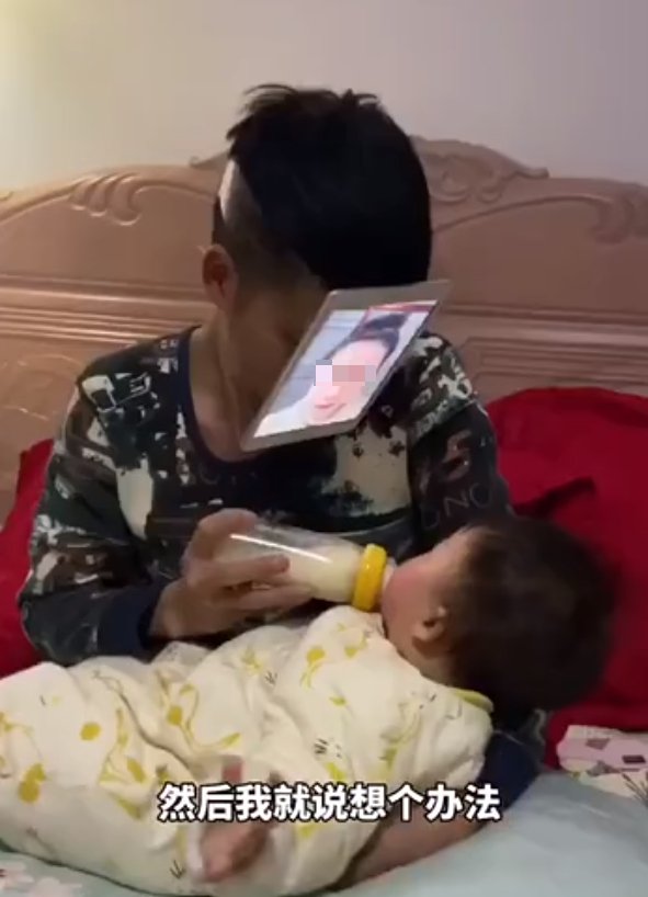 根據陸媒《瀟湘晨報》的報導,本月27日時,大陸江西婺源一位嬰兒因媽媽有事出門了,即便餓了也不肯喝奶,逼得爸爸只得讓平板顯示出媽媽的照片,再把平板綁在自己的頭上,偽裝成媽媽的樣子,哄騙嬰兒喝奶。