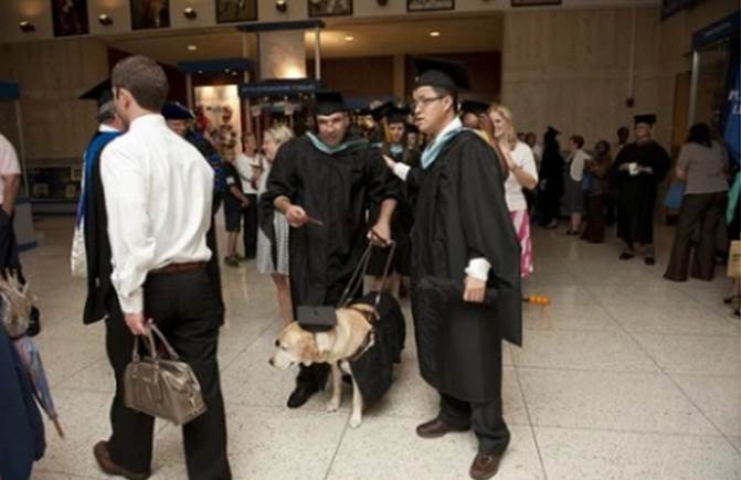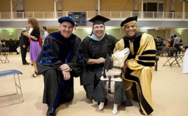 導盲犬Kirsch陪伴主人卡洛斯(Carlos Mora)參加了每一堂課,因此學校決定頒發榮譽