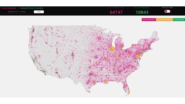 購買槍械到底有多容易?並以知名連鎖咖啡廳星巴克為例,2013年統計全美一共有10843間店,但是政府共發了槍枝交易執照64747張,包括了專賣店、當鋪、私人賣家,也就是說每一間星巴克店面的旁邊就有6間合法賣槍的店。咖啡原本應該是垂手可得的飲品,但沒想到槍械的取得率竟然遠遠高於一杯咖啡,實在驚人。