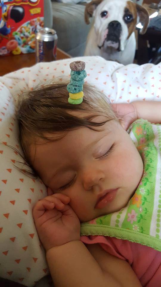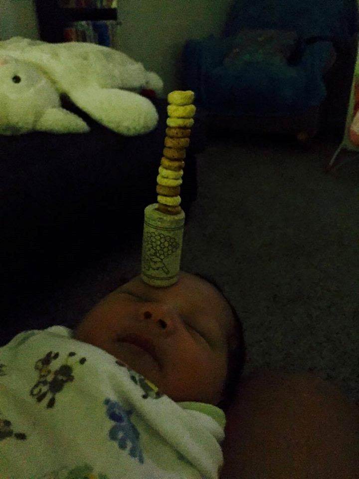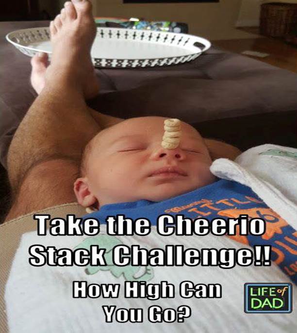 Patrick Quinn),有一天他在三周大的兒子鼻子上放了個神奇圈圈餅後「就忍不住一直疊上去」,最後在兒子鼻子上共放上5個神奇圈圈餅,隨後他將照片放上網路,並徵求挑戰者。有些家中沒有神奇圈圈餅的老爸,也拿了其他食物一起加入戰局。