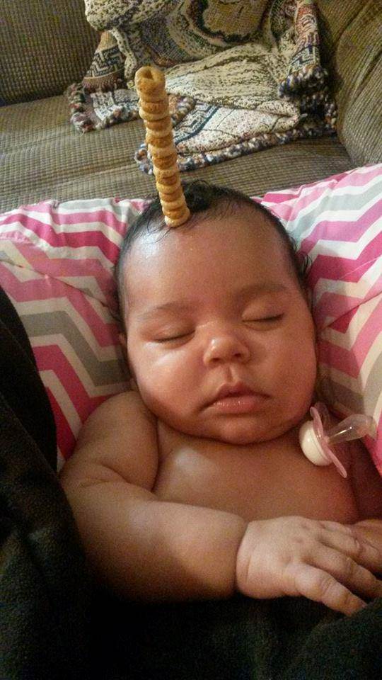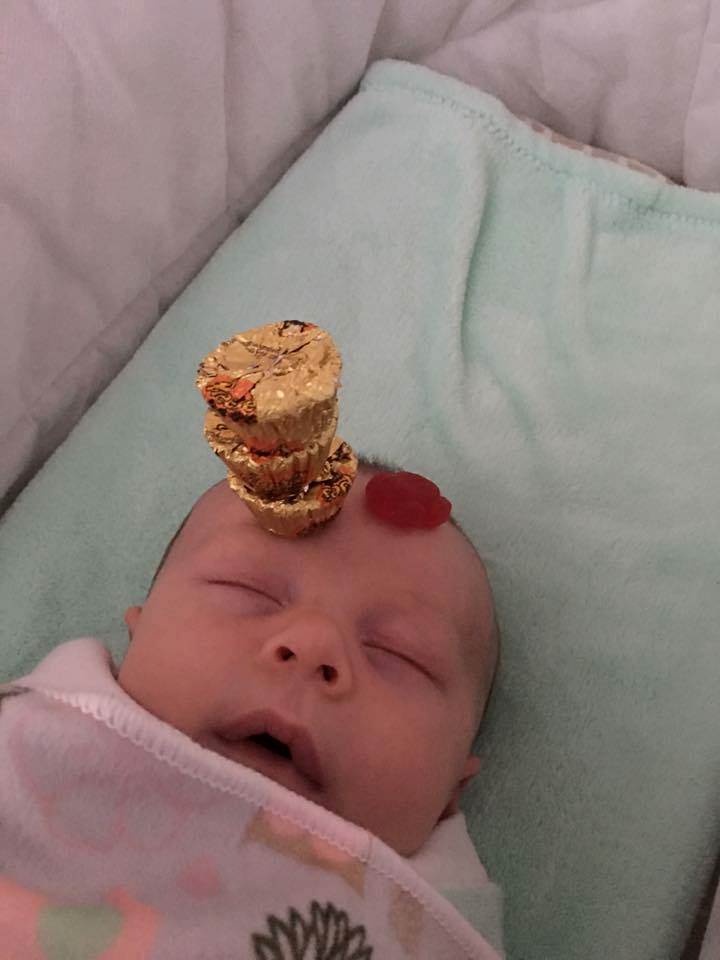 就連剛出生的寶寶也不放過,爸爸還驕傲的說共有「12個」圈圈餅呢!