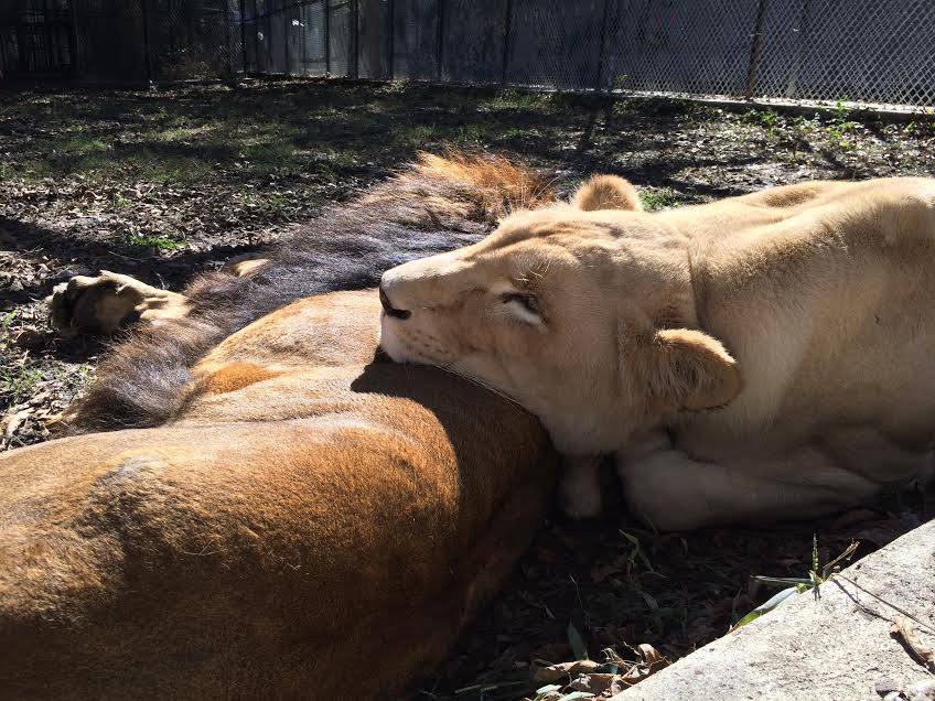 非洲獅卡恩(Kahn)與母獅希拉(Sheila),過去都被主人帶去四處表演,當成搖錢樹,美國農業部在2009年時將牠們逐一救出,後來交給了德州野生救援及教育中心「In-Sync Exotics」照顧。非洲獅卡恩(Kahn)當時才6歲,且營養不良,疑似因為焦慮還把自己的尾巴末端咬斷。情況最嚴重的是15個月大的母獅希拉(Sheila),她獲救時俺俺一息,甚至農業部還建議將牠安樂死,幸好在中心人員的細心照顧下,逐漸恢復健康。