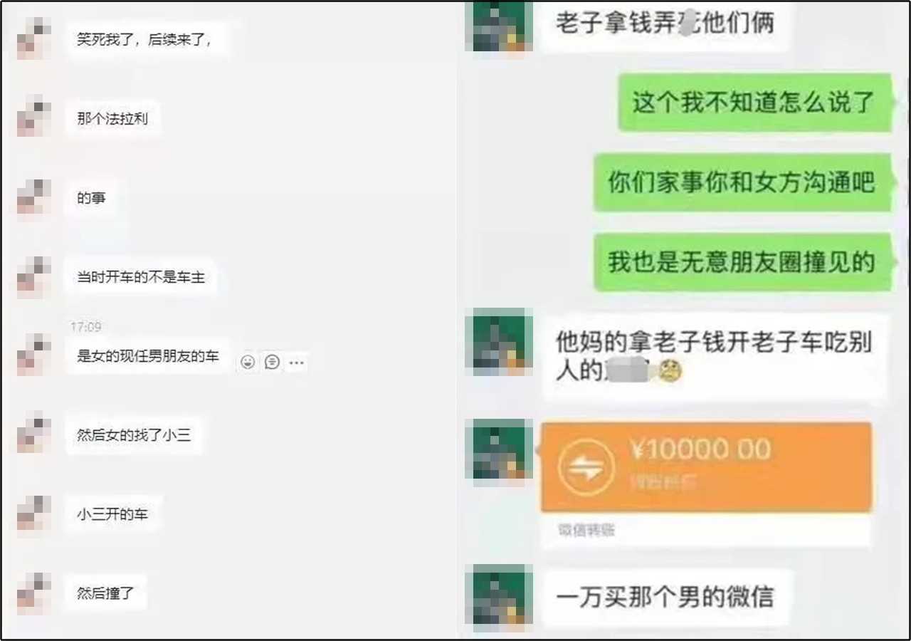 這件事情也在微博上引發熱烈討論,雙方身分也被挖出,原來這台法拉利根本不是男駕駛的,而是女子的男友所有,女子男友也在得知此事後氣炸,在網上懸賞1萬元人民幣(約4.2萬新台幣),要求知情者提供男駕駛的聯絡方式,想要報復這名男駕駛。