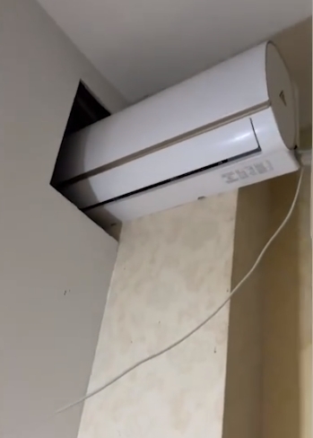根據《澎湃新聞》報導,大陸江蘇一名程姓女子表示,某一天去親戚家玩後,得知父母在她的臥室裡安裝冷氣,當下心情是既興奮又開心,想著「哇,我房裡終於有冷氣了」,沒想到上樓一看,眼前的畫面卻讓她相當無語。只見畫面中,牆上被鑿開了一個洞,而冷氣就這樣橫穿過2個房間,3分之2在父母房裡,另外3分之1則是在自己房中。
