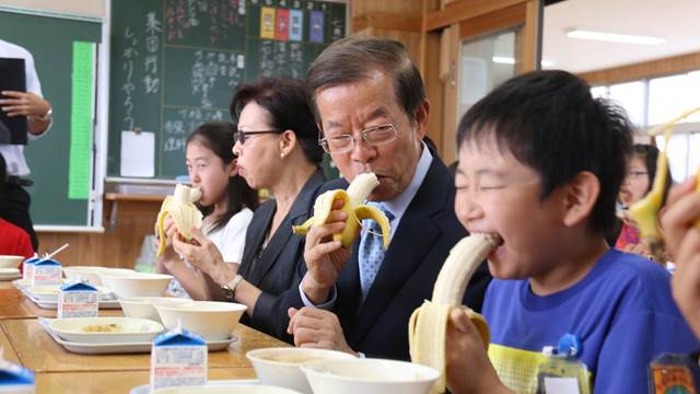 靜岡縣御殿場市小學校在7月6日時首次試辦,把台灣香蕉納入營養午餐裡,台灣駐日代表謝長廷也到場拜訪。小學生們不但都沒有看過台灣香蕉之外,還帶回家讓家人享用,吃完都嘆為觀止,連忙問孩子是哪裡拿來的,一聽到是學校營養午餐就催促當地市場趕快進口台灣香蕉。