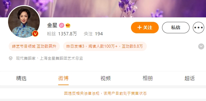 ▼金星微博遭到官方禁言。(圖/翻攝自金星 微博)