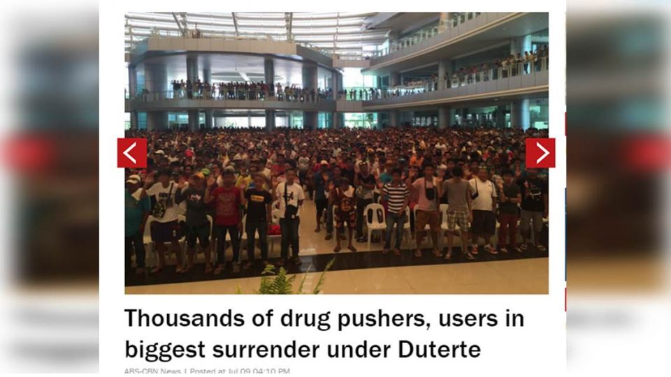 ●(圖/ABS-CBN NEWS,上千毒犯害怕被殺而擠爆禮堂自首。)