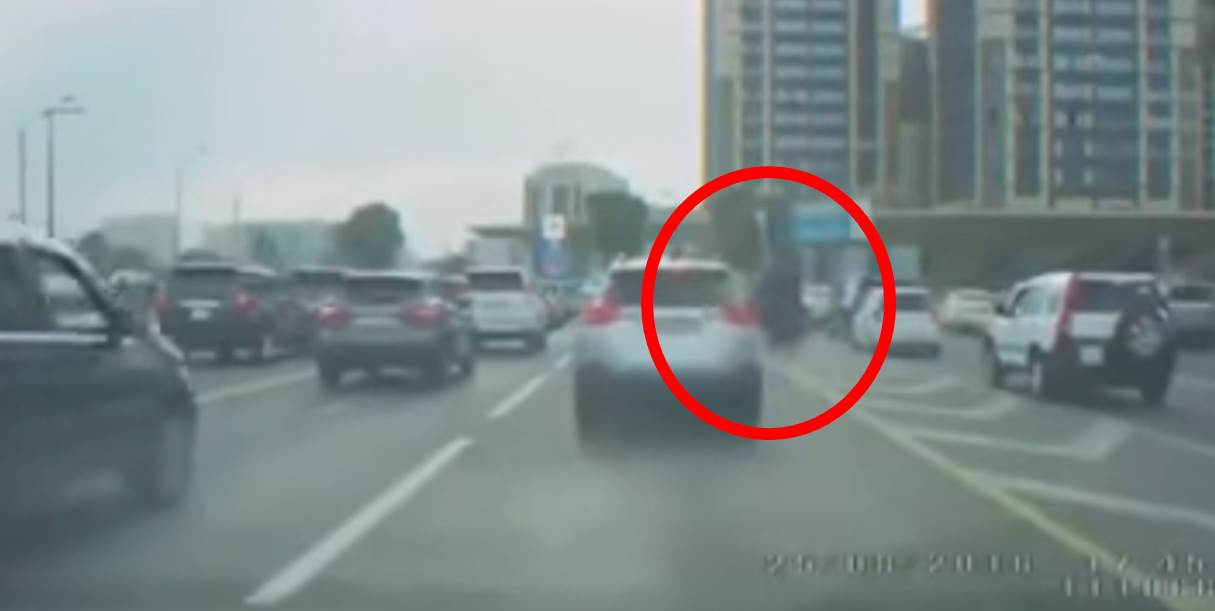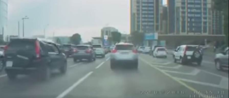 在哈薩克鬧區路口,車子走走停停,駕駛人心急如焚,雖然人在車上但心已經在辦公室,根據《巴士的報》報導,一名駕駛在車上放著音樂舒緩塞車的情緒時,突然間行車紀錄器右前方出現一個黑影,仔細一看是一隻