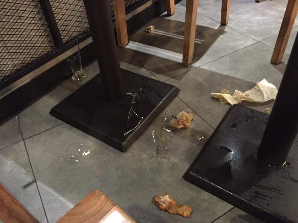 陸客對著服務員大罵,並在桌上留有吃過的泡麵痕跡(圖/