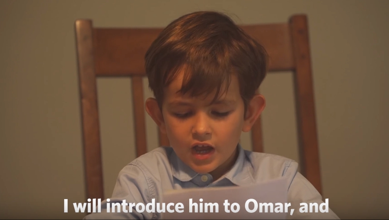 然而,並非只有「大人」才關注這樣的事情,年僅6歲的艾力克斯也相當心疼歐姆蘭的遭遇,於是他親自寫了一封請願信給美國總統歐巴馬,信中提到,除了會教歐姆蘭說英文、算算數和騎腳踏車。此外,還會介紹學校的好朋友給歐姆蘭認識,歡迎他加入同樂的行列。而且艾力克斯還強調,就算歐姆蘭沒有帶玩具來也無妨,因為他和妹妹都很願意分享所擁有的一切。