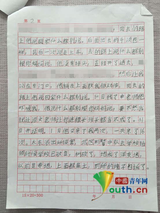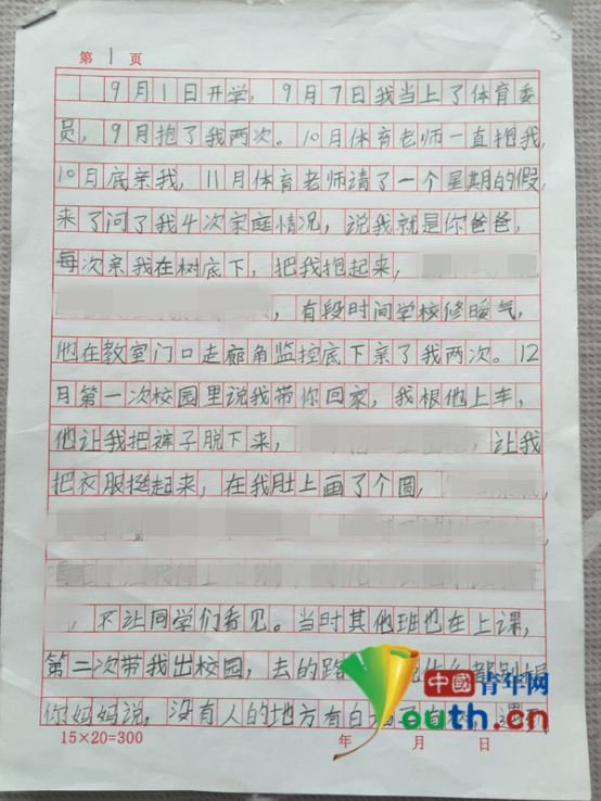 據《中國青年網》報導,母親李女表示,去年剛開學不久,女兒就被楊姓體育老師指定為班上的體育委員,李女說,楊老師之前就很常對女兒樓樓抱抱,剛開始不以為意,認為是老師對學生的關愛。但後來女兒突然有了很大的轉變,以前很開朗,放學回家都會和母親聊天,後來卻變得少言寡語,還出現異常行為,「一回家就躺倒床上,兩條腿不停的蹭來蹭去!」