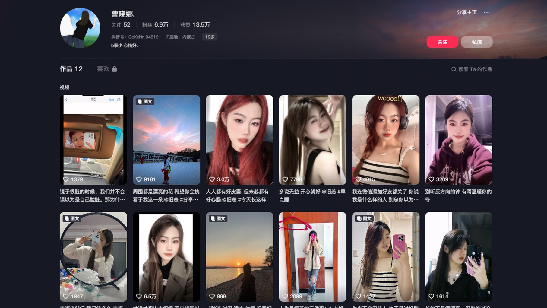 ▼當事人因為長得太正爆紅,疑似是她本人的抖音帳號也被搜出。(翻攝自自曹曉娜抖音)