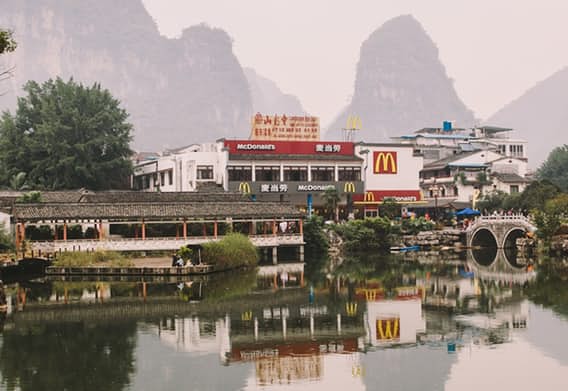 中國桂林陽朔縣的麥當勞也入榜,周邊的山水與老建築互相呼應。