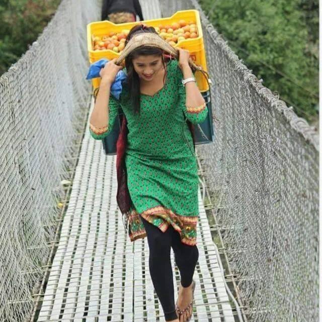 據《每日郵報》報導,18歲少女什雷斯塔(Kusum Shrestha)為了幫忙貼補家計,學生時期就會利用課閒之餘,步行1.5小時到市場擺地攤賣菜。她在去市集的路途中,巧遇了一名尼泊爾攝影師,當時這名攝影師默默地為她拍下了2張相片,一張是她背著番茄走過吊橋,露出燦爛微笑的樣子,另一張則是她在市集裡拿著手機講電話。