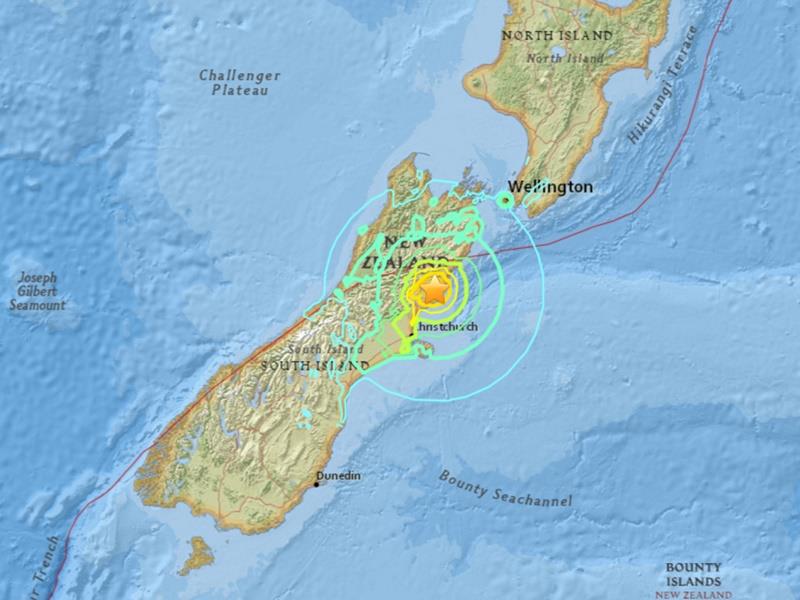紐西蘭基督城今(13日)台灣時間晚間7時02分發生規模7.8大地震,震央位在基督城北方57英里(約91公里)沿海平原區域,深度只有10公里。地震威力強大,連距離震央200公里的首都威靈頓都可以感受到威力。目前紐西蘭發出海嘯警告,敦促紐西蘭南島居民往較高的地方移動。
