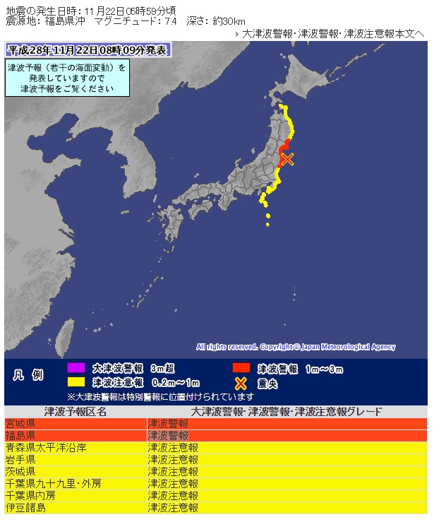 天佑日本!日本氣象廳表示,在當地時間清晨5時59分,