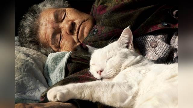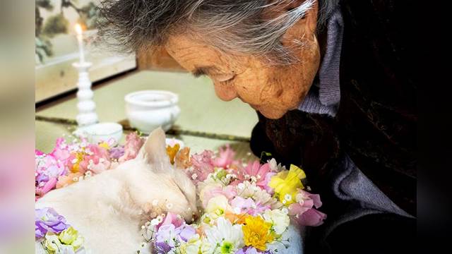 奶奶曾對福丸說:「我們永遠不分開!」可以明顯地感受到人與貓之間很深的羈絆,而攝影師去年年底才在臉書上PO出最新照片,福丸閉著眼安詳地躺在花圈中,奶奶在一旁看著牠,向牠道別,正剛好在2月22日「貓之日」到天國旅行。