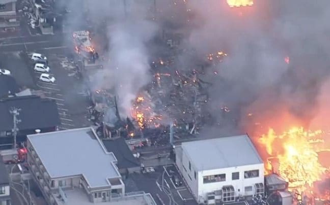 日本新潟縣昨(22)日上午發生嚴重火災,當地一間中華料理店傳出火警,由於現場風勢強勁,助長火勢,導致附近商店街遭波及,大火延燒超過10小時,才終於被控制住,不過這場災難,造成2人受傷、140棟建築物燒毀、700多人緊急撤離。當地一名62歲和服店業者驚恐地形容,「到處都是火,有如空襲場景」。