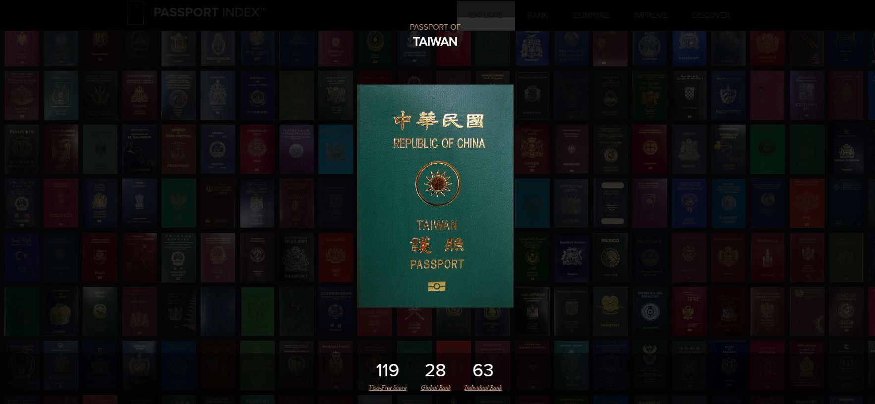 至於台灣的護照,從去年的109國提升到119國,足足增加了10個國家,排名從去年的第29前進到第28名,但是根據外交部統計,台灣的護照在137個國家或地區都享有免簽或是落地簽的待遇。